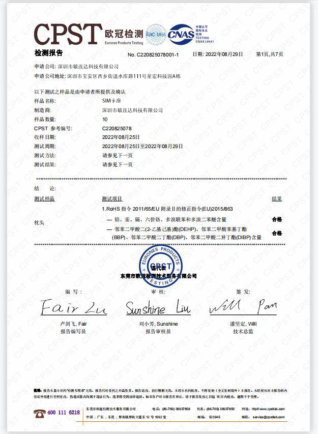 深圳市敏连达科技有限公司通过多项国际认证和行业标准,确保产品质量和可靠性。